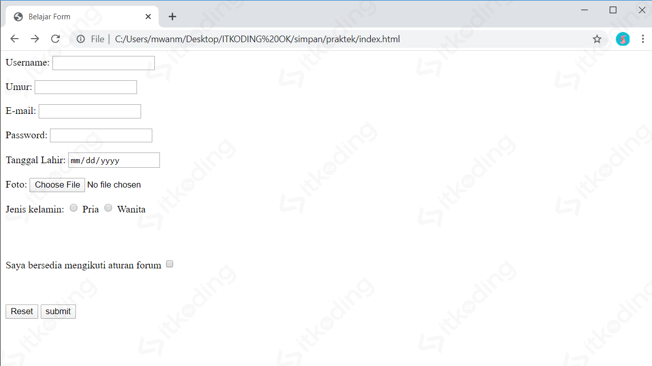 Contoh Coding Html Untuk Form Hadling : Belajar Html 20 Membuat Formulir : The example below displays a simple html form with two input fields and a submit.